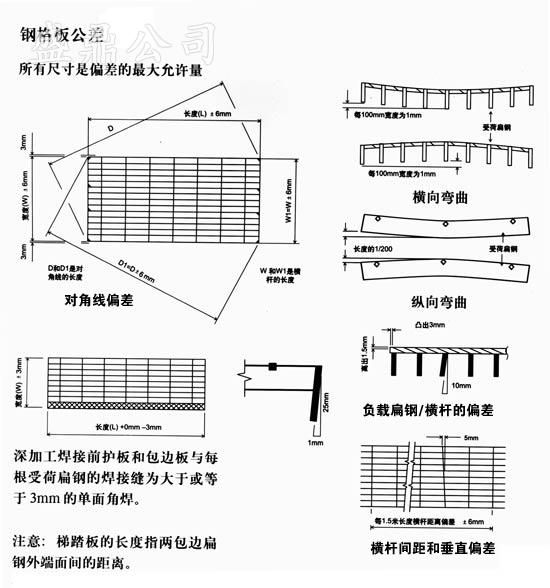 在設計荷載條件下,任意踏步中點變形撓度不能大于其跨距的1/200,最大不能超過6mm,除滿足上述要求外,所有踏步板還應符合下列規(guī)定: